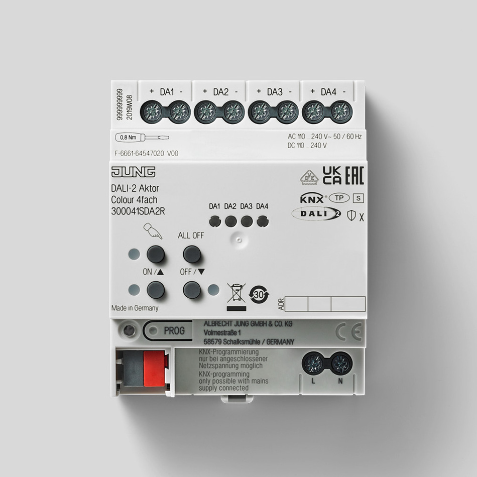 Geräte in DALI-Installationen effizient steuern mit dem neuen JUNG KNX DALI-2 Aktor